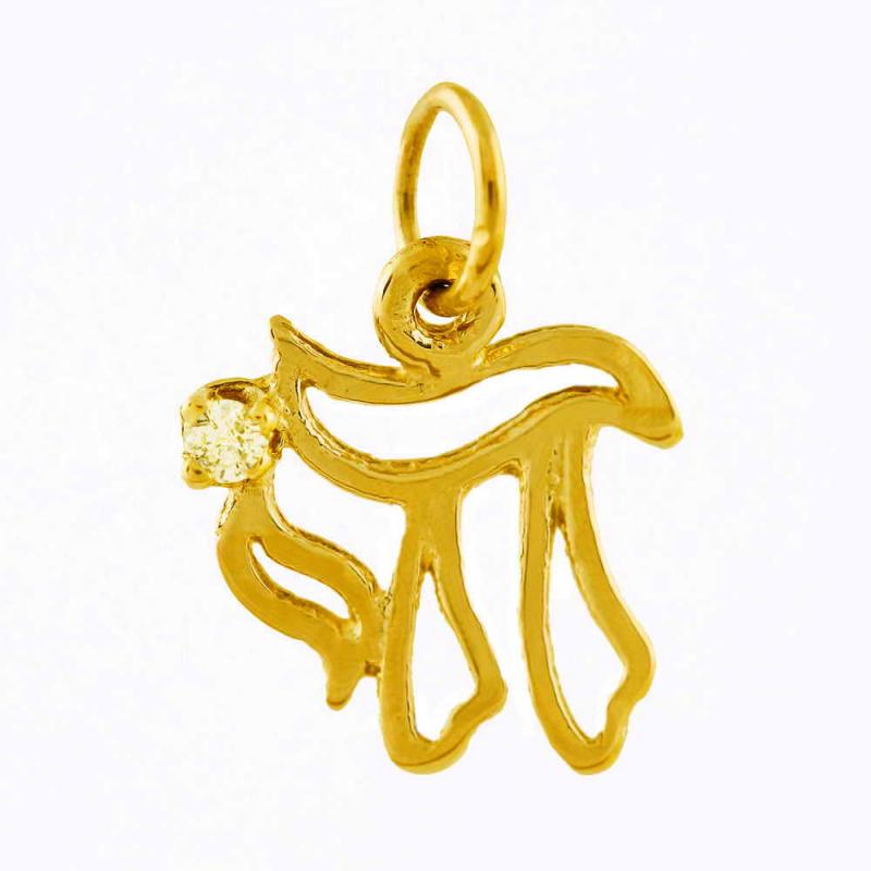 Small baby 14kt gold chai with a single diamond placed at the top of the pendant. Chains may be purchased for an additional cost.