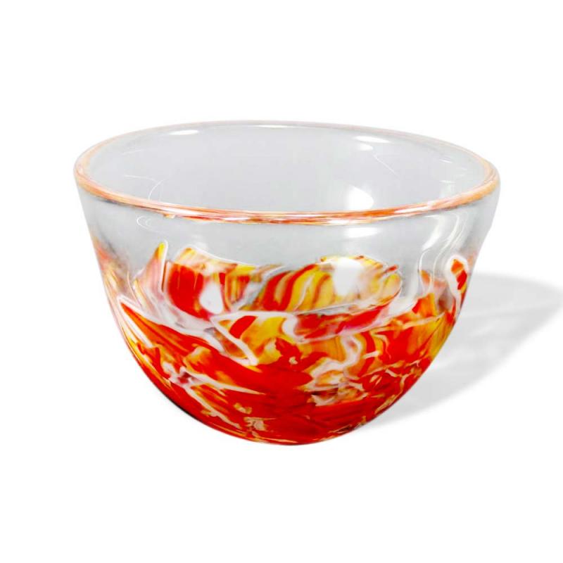 This exceptional wedding gift makes an amazing transformation! Mark Rosenbaum starts by creating a blown glass ball with an ideal thickness to step on at the wedding. After the wedding he then takes your broken glass and heats it into a molten form. Then using a glass blowing technique, he carefully creates your one of a kind wedding glass bowl.
