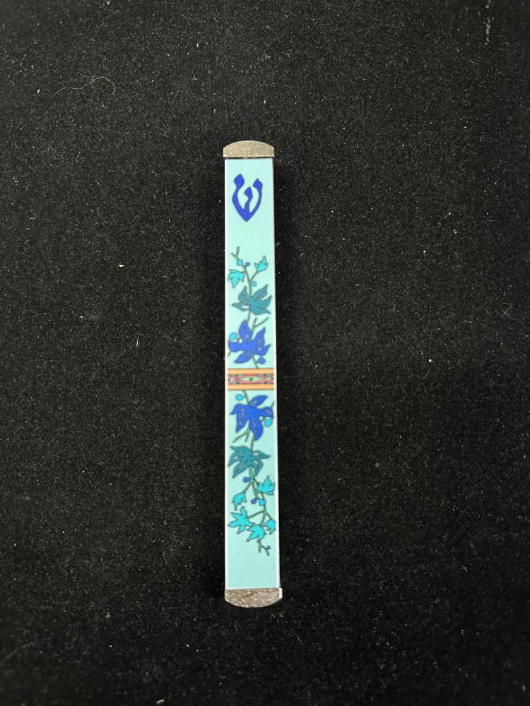 Blue Floral Mezuzah. Great gift for new home or any occasion. Takes either an 8 or 10 cm scroll5.25” x .5Double face tape