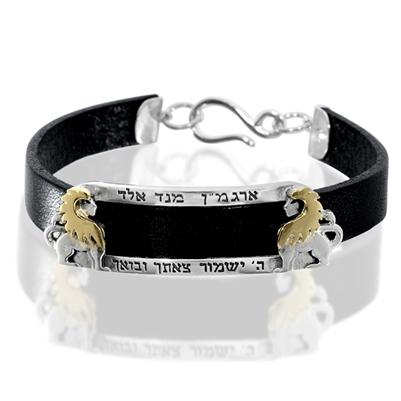This masculine leather bracelet adorned with lions (Ariel in Hebrew), Kabbalistic blessings and the Priestly blessings is a powerful piece of jewelry for a special man in your life. The bracelet features a hook closure making for a comfortable fit.