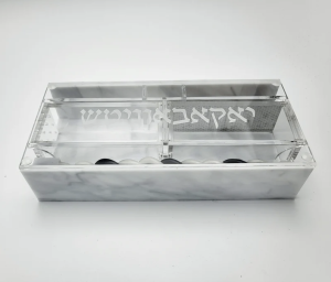 Premium and practical meet in this compactly designed lucite Havdalah kit. All components come in a compact box. Crafted for a pleasing look and easy clean-up and pack-away, this set makes a unique gift to self or others.