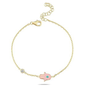 Gold-plated Sterling Silver Colorful Enamel Hamsa Bracelet