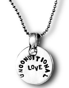 The Hebrew three letter coded Name associated with giving and receiving unconditional love - "Hay, Hay, Ayin" on the front, the English - "Unconditional Love" on the back.