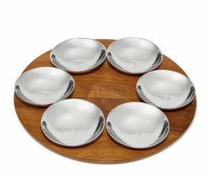 Bring timeless beauty to your Passover table with this elegant Acacia Wood and Nambé Alloy Seder Plate. The warm, organic grain of acacia wood contrasts beautifully with six gleaming alloy dishes, creating a modern take on a cherished tradition. Thoughtfully designed for both form and function, this piece serves as a stunning centerpiece and heirloom-worthy addition to your holiday celebration.